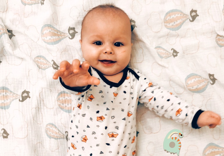 В эмоционально-социальном развитии сдвиги есть, и немало. Человек вообще очень повзрослел. Гуление потихоньку заменяется лепетом. Га-га-га! Лага-лага! Пэу! Стал издавать пукающие звуки, как если изображать мотоцикл. Засунул наконец ноги в рот, чему очень рад 😃