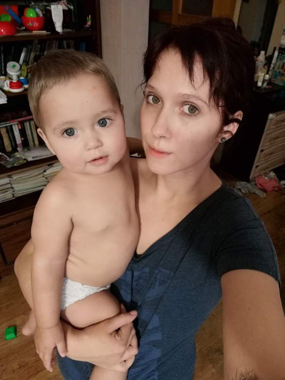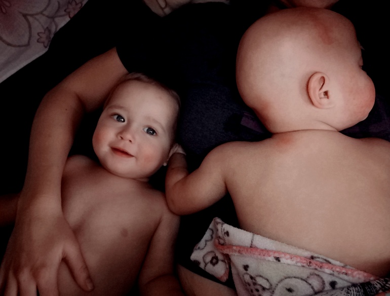 Коротко о главном. Детёныши ходят, Степаха весьма бодро бегает. Недоступных мест в доме почти не осталось. Этот кабанчик, который сел-то только в почти 9 месяцев, видимо, свое отсидел, набрался сил и попер как танк. Он залезает по отвесной лестнице на горку, впрыгивает на диван, притаскивает подставку и лезет стягивать все со стола 😐 Всё на него падает, но он довольно ловко отпрыгивает назад. Лоб в синяках, спина в царапинах. Весело, в общем. Александра - дама аккуратная. Сказали "нельзя" - не полезет. Имеет прозвище "Сашка-рюкзачок", так как любит залезть на руки и вцепиться повисеть минут 10. Спит на мне, засранка. Ночью такого нет, кладёшь в кровать - уснула. А днем изволь, мама, лежать и не дёргаться)) Спят оба все так же два раза, отбой в 8 вечера, но стали утром чуть позже просыпаться. Я мега-отвратная мать и не гуляю с ними, мне холодно. В коляске не спят категорически.