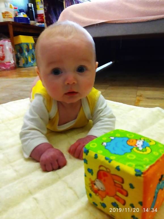 Отчёты по месяцамОчень захотелось наконец-то поделиться нашей историей! Четыре месяца позади, очень трудные и мучительные, особенно первых два. Лично для меня, так как я очень мнительная и тревожная сама по себе. Очень много прочитанных источников и замученных врачей 🤪 И теперь, что мы имеем:Рост и вес пойдем в понедельник мерять, но думаю, что 6 кг имеем. Родились мы маленькие, но вес набарили всегда хорошо. Перевороты со спены на бочок в три месяца, перевороты со спины на живот в три с половиной, хватает предметы на животе так же, в три с половиной, сейчас уже уверенно и захват идёт всей рукой. Нервничаем, когда не можем дотянуться, но это вопрос времени, скоро у нас всё получится) хихикаем, разговариваем на своем французском, радуемся, когда приходит папа и моментально реагируем на любой звук от Арчика ( нашей собаки), от него просто в восторге, хватает за лапы!🤗 Почти пережили регресс сна, спим уже лучше. Утром спокойно выдерживаем час без мамы и папы, гуляем на животе и ведём раскопки в игрушках 😄 обнаружили недавно свои ноги, чувствую, что скоро они будут во рту 😏 умеем снимать носки, а подгуз пока что не научились... 😋 Любим укрываться и брать в рот одеялко или полотенце, чем прикроют, а потом обратно раскрываться, прям любимая игра! Обожает с рождения тюбик детского молочка для тела, а сейчас тянет на столике пеленку, где стоит тюбик, таким образом тянет его к себе ближе, потом конечно же в руки, а затем в рот. Уже с удовольствием купаемся и переварачиваемся в воде, правда в круге. Сразу огромная просьба для тех людей, кто захочет написать, что это опасно и убрать круг, то пожалуйста, не пишите. Благодаря ему, у нас спал тонус, мы стали увереннее и веселее в воде, при этом мама с папой, все время контролируют и придерживают дочу с двух сторон. И пару фото, какие мы 🥰
