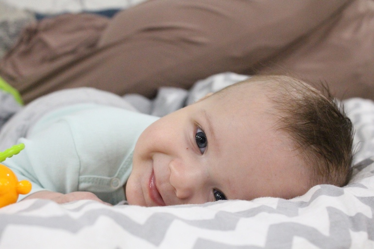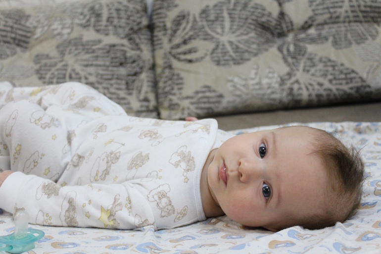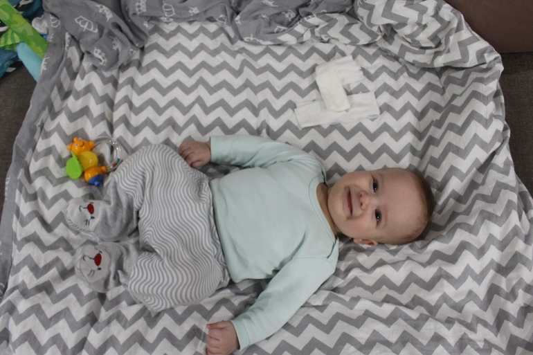 Теперь про характер: долго может сам лежать и играться. Тем более с любимыми игрушками. Но иногда ему нужно внимание, чтоб кто-то его смешил и был рядом. Все тянет в рот, боюсь, когда начнёт ползоть, все будет тащить. В основном лежит на животике. Поднимает уже попы, пытается ползти. Часто бывает, что за пару минут оказывается на другой стороне коврика 😊. Любит улыбаться, особенно в ответ на улыбку, также хохочет, когда над ним смеются и очень любит наблюдать за папой).