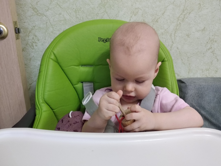 Недвусмысленно показывает, когда хочет сиську. Она не лезет и даже не дотрагивается до нее, и не держит ее никогда сама, но я как-то понимаю, что она хочет именно это. Вообще, часто прикладывается днём, и иногда постоянно висит на ней ночью. Хотя бывают и спокойные ночи, когда она приложится всего 2-3 раза. Днём грудь для нее вообще не еда, и даже не питье - вода в свободном доступе, и она выпивает за день от 500 до 700 мл (в зависимости от того, замечу ли я, что поильник опустел). Кушает 4 раза в день. Любит еду с нашего стола, но я пока ещё даю ей ее разводные каши и баночные пюре, мне так проще. Любит пить из настоящей кружки - готова пить, пока обратно не полезет.