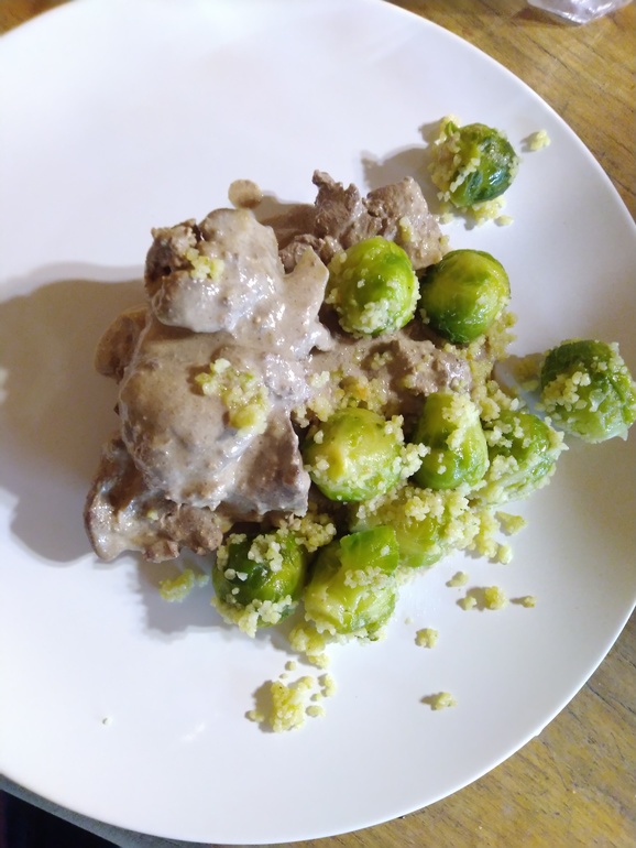 не менее ужасная печень куриная, брюссельская капуста и кускус