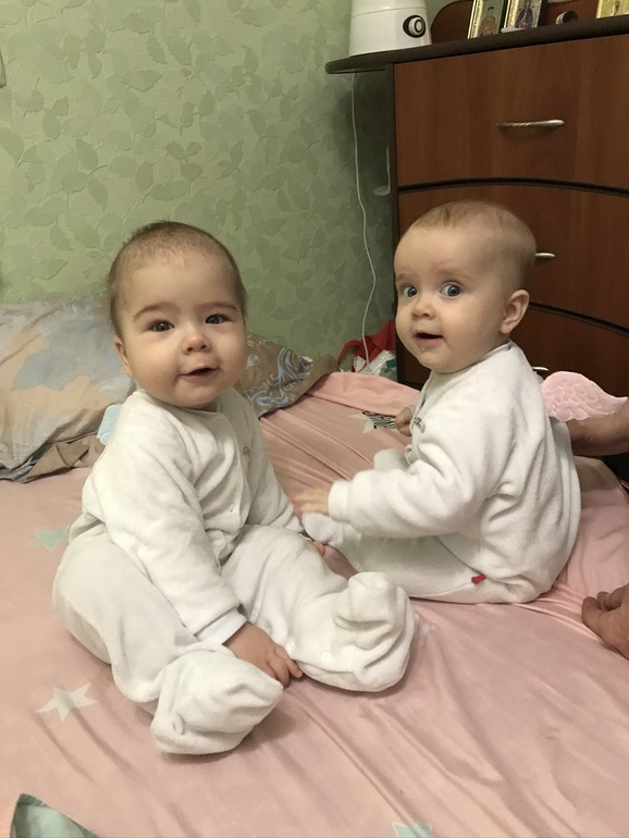 Прикорм . Едят по немного кабачок, тыкву, морковь, яблоко, кукурузную кашу, банан . Но до полноценной еды далеко еще😩 смесь так и не хотят: выпивают максимум 30 мл и все. А так сейчас самый интересный период начался, с ними так интересно😊 правда когда не капризничают 😂