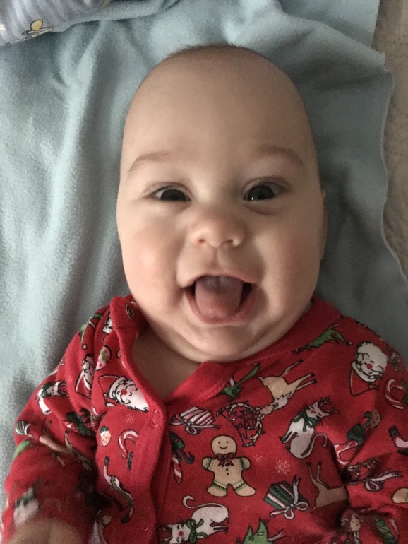 Отточил умение гулить, появились новые звуки «бу», «ня», «га», «дя». Утром сразу после пробуждения поёт песни, используя весь свой слоговый запас.