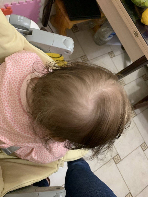 Я не стригла. С «пяткой» на затылке дока ходила довольно долго. Плюс к этому волосы на мокушке росли очень активно, а на висках и затылке почти нет. Был такой забавный чуп на голове. Сейчас ей 3 года, всё ровно, почти до талии серьёзная такая шевелюра.