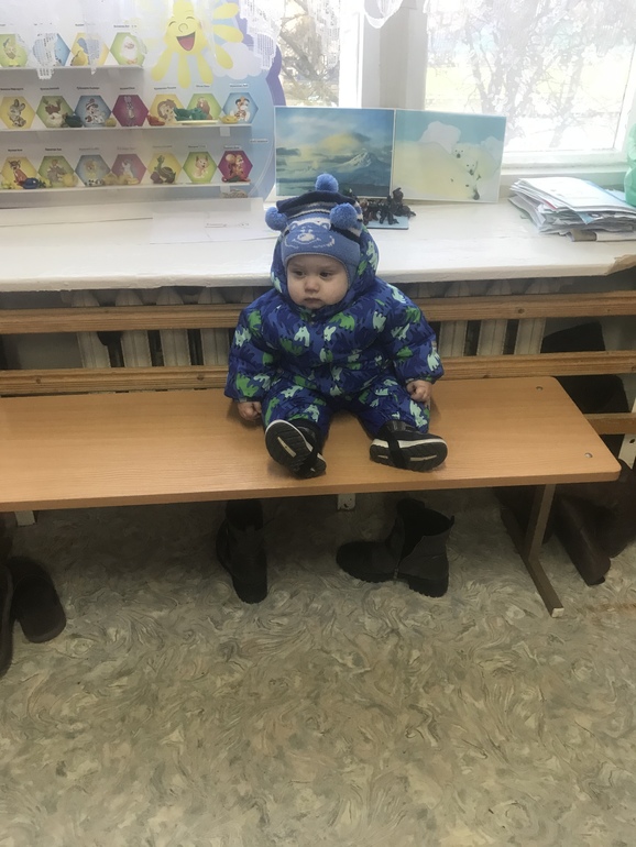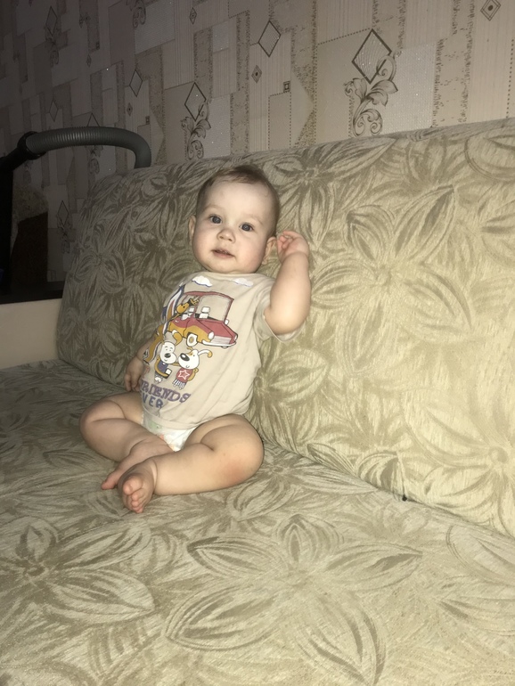 Есть два главных достижения этого месяца. Артём уверенно стоит без опоры и делает до 6 уверенных шагов в сторону, потом падает на попу и ползёт, от опоры к опоре ходит только ножкой ни за что не держась.