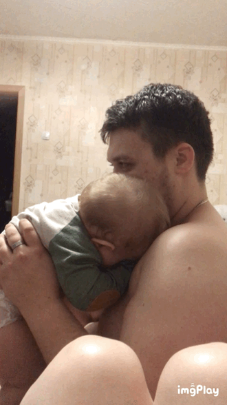 Любит обниматься с папой, когда тот приходит домой. Повыдирать волосы, пытаться отодрать нос и губы и выколоть глаза. В этом мне повезло. Со мной Артём такого не делает.