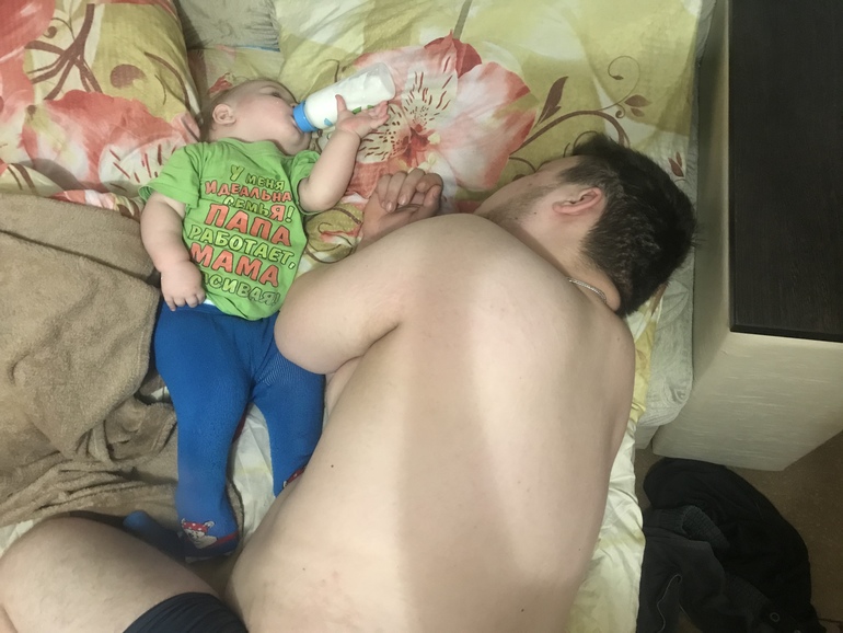 Когда уходила на работу разбудила мужа и попросила покормить сына. Только сын кормился сам