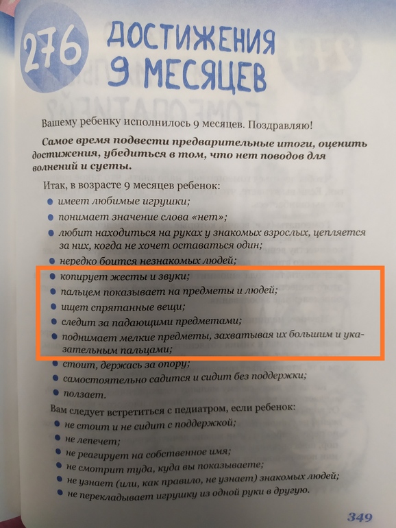 Интеллект ребенкаЧитаю Комаровского и анализирую умелки. Нам 8,5 и нет вот этих навыков. Ваши дети умели это в 9 мес?