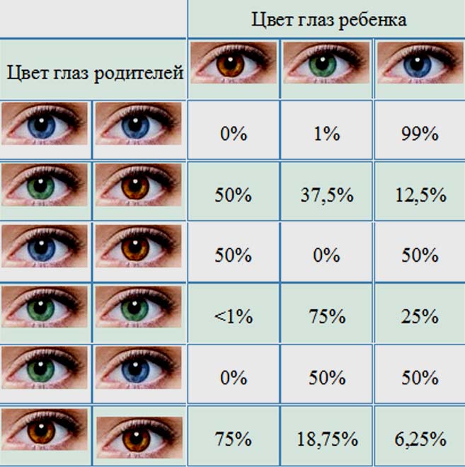 Блин, ну по этой таблице выходит что у меня не может быть зелёных глаз, а в моих глазах явно присутствует зелёный цвет )) кстати у первого мужа глаза серо голубые и у дочки получились прям зеленые, без намёка на голубой или серый. Да и вообще нас в школе также учили на биологии что у двух резус положительных родителей не может быть резус отрицательного ребёнка, а у меня резус - при родителях + 😁