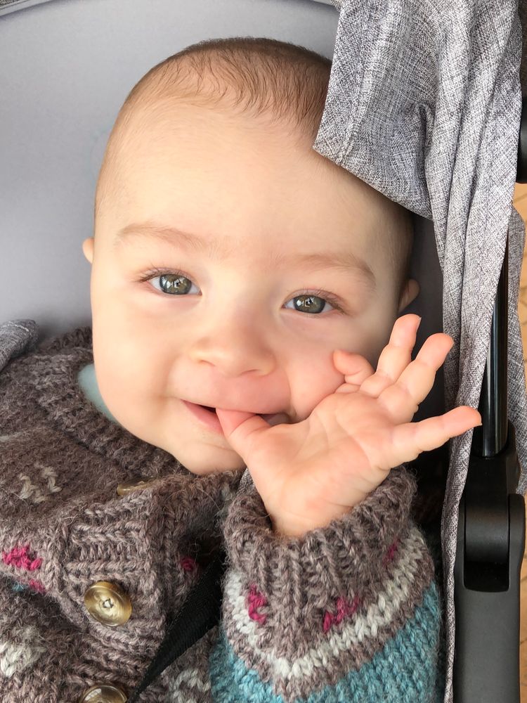 UPD. Нам 9 месяцев, а глазки так и остались серо-зелёными. Появился некий ореховый оттенок вокруг зрачков, думаю такой цвет и останется.
