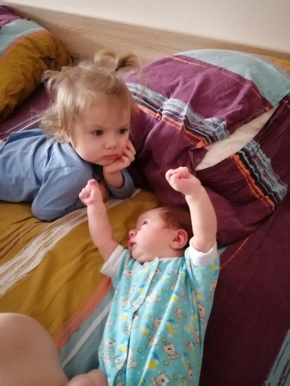 Патронажная медсестра пришла всего раз, взяла скрининг и ободрила, что девчонки скоро подрастут и будут друг друга мутузить. Валя особых признаков ревности не подаёт, капризы и истерики бывают, но в целом тихо в нашем царстве. Мне кажется, она воспринимает Катю больше как ещё одного котика, не понимает, что это человек) Гладит её, обнимает, целует даже в макушку. Бывает, жестами показывает на кровать, когда кормлю - клади, мол, обратно 😂