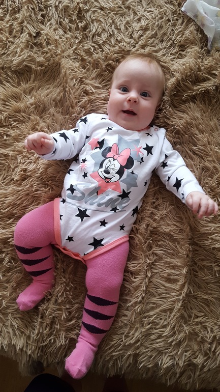 Что научились за месяц: переворачивается на живот через второй бок, встаёт на четвереньки и раскачивается, делает попытки ползти (на четвереньках уже уверенно переставляет ручки, пытается переставить ножки, немного получается). Были у невролога, тонус в ножках прошел, синдром короткой шеи и кривошея тоже нас покинули. Начали вводить прикорм, и это жесть. Лиза кушает с удовольствием, любит кабачок, понравилась гречка, но на неё обсыпало. На капусту цветную тоже обсыпало. Пробовали печеное яблочко и банан через ниблер. Сейчас вводим рис, сегодня третий день, пока всё чисто😁 Так что полностью введён только кабачок.