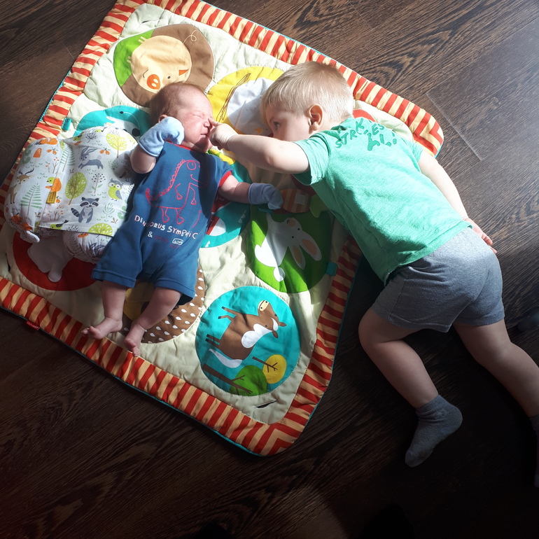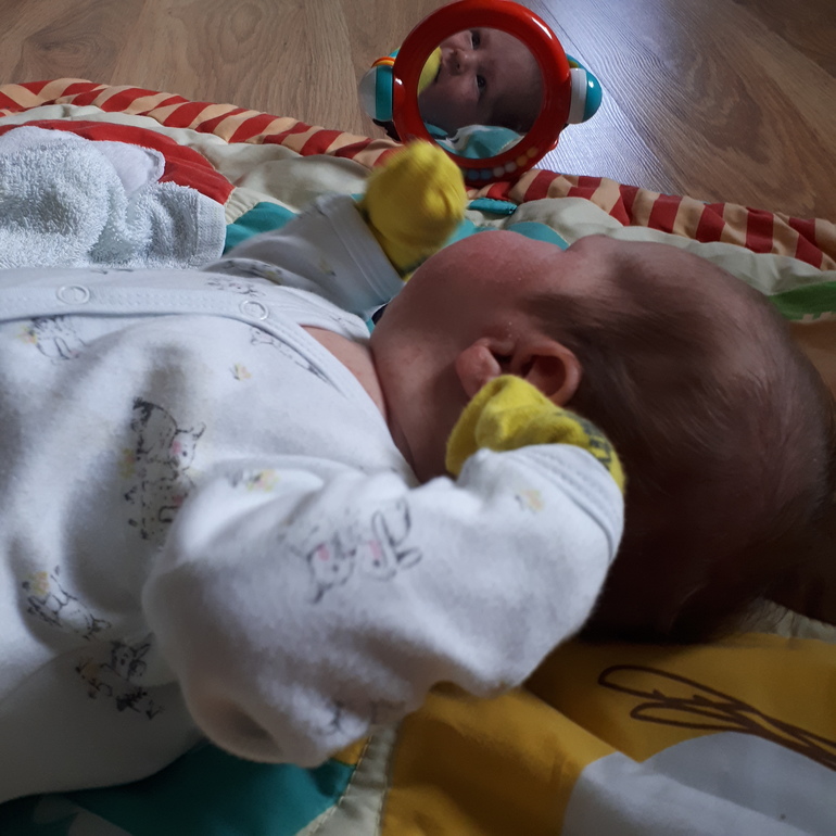 Игры 🎲 В кроватку поставила ч/б картинки (ага, в этот раз моя лень увеличилась и не стала печатать, вырезать, а купила готовые - транжира 💸). На коврике иногда ставлю ему их. С погремушками пока никак не складывается. В зеркало немного поглядывает. Зато Глебушке нравится следить за братом и папой 😊 Мобиль приделали к кроватке - без энтузиазма. Думаю купить карусель, типа как у Льва была - там заводная мелодия, именно занимала ребенка, развлекала 🎠 А сейчас Моцарт с Бахом приправленные звуками природы как-то и не усыпляют толком, и интереса живого не вызывают 🎼