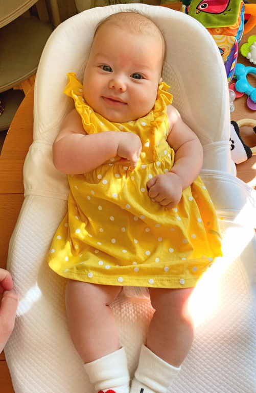 Три месяца!) мы уже такие большие! Закончили курс массажей. Теперь мы такие красивые, подтянутые, спортивные)))) голова теперь ровненько, тонуса нет. Активно учимся пользоваться своими ручками. Резво поворачиваемся на бок и пару раз перевернулась сама на живот (оба раза было ночью). Все это благодаря массажу. Так же благодаря массажу мы пытаемся подогнуть ножки под себя🙈 Массажистка ругала😂 говорит «погодииии!!! Сначала освой повороты на живот! Эх ты чемпионка»