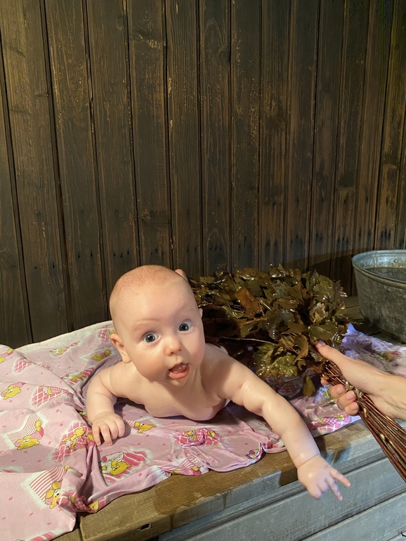 Уже на даче ходили 2 раза в баню с ней, даже веничком легонько парила))