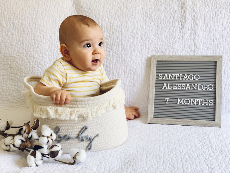 📌 Появилась целая уйма новых звуков и слогов. Санти до этого «болтал» где-то до 4 месяцев, потом взял перерыв. И вот теперь его не остановить😅 «да-ба-дя-бя-ма-мя» и так далее по алфавиту.