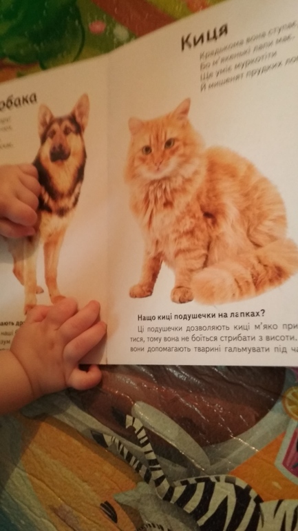 На слова "где киця" - ищет книжечку с кицей)