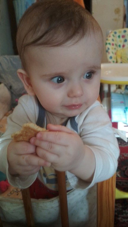 Наверное начался период сепарации, потому что куда я, туда и он, везде надо ему быть со мной, хватается за ноги и тянет ручки ко мне, чтобы я взяла на руки 😀
