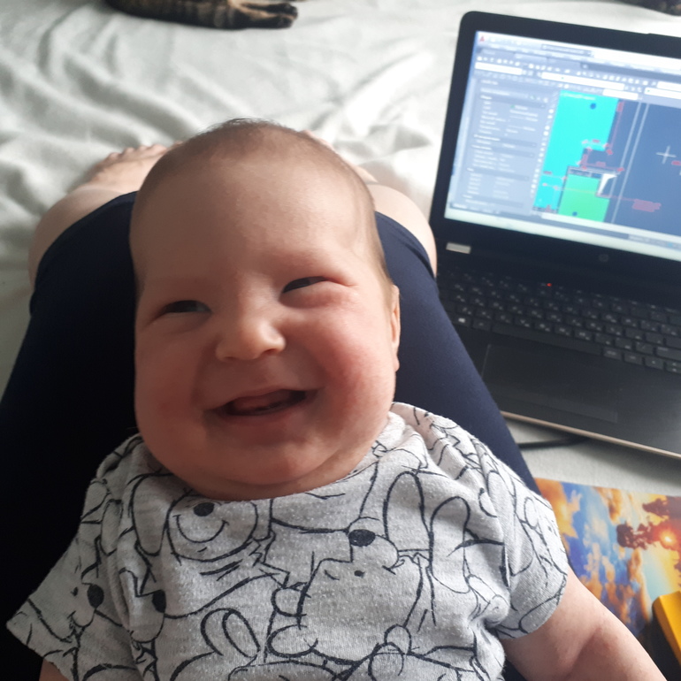 ✔ смешунчик - буквально на днях начал смеяться, пока неловко получается, но постоянно тренируется 😀