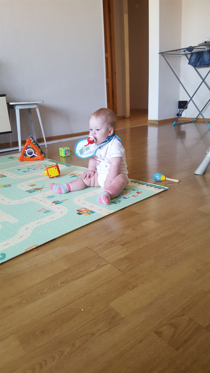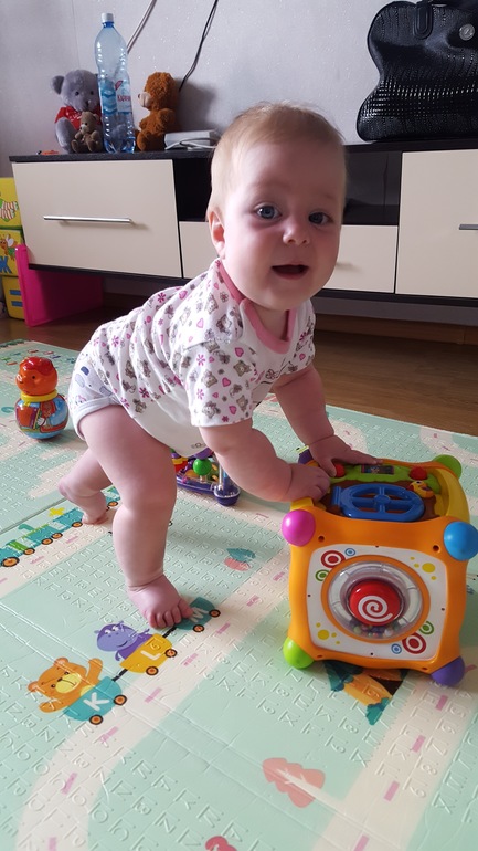 За этот месяц Лизуша научилась очень шустро вставать, теперь делает это везде. И уже пытается ходить, получается пока не очень уверенно😁 Девчушка растёт упорная, если что-то захотела, то уже ничего не остановит, ни преграды, ни падения. Последних, кстати, много.