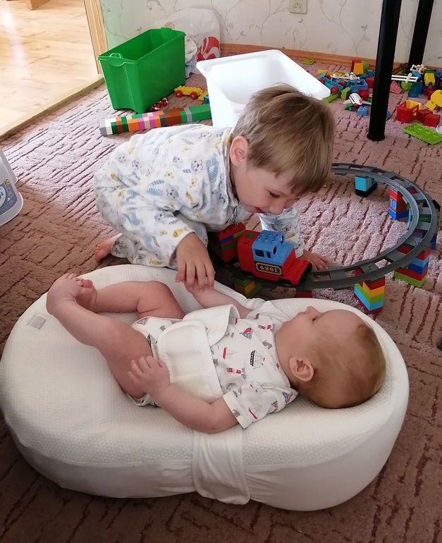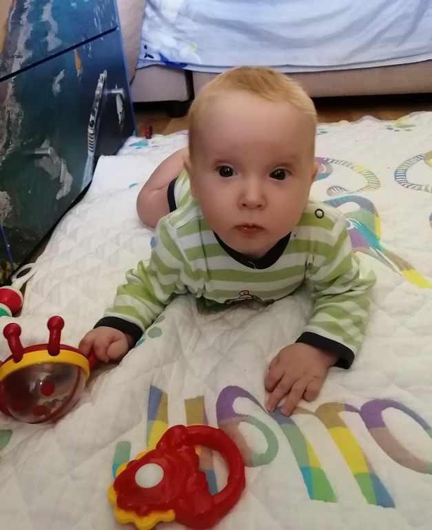 Рост 63 см, вес не знаю, недавно вернулись из деревни, поликлиника не работает. Сравнивая со старшим, Ваня немного пониже. Зато шустрее! В 4 месяца 4 дня перевернулся на живот через левый бок, третий день тренируется, но не очень активно. Крутится по кругу когда лежит на животе, поднимает попу и пытается встать на колени, стал пробовать выпрямлять ручки, 1 раз пытался качать пресс. В общем всего по чуть-чуть)))