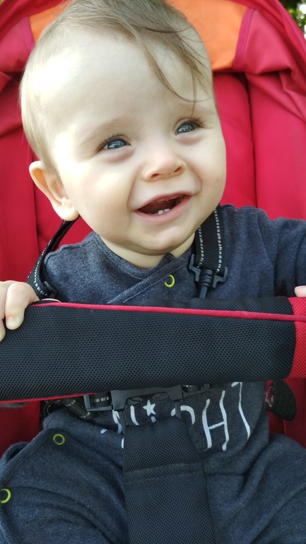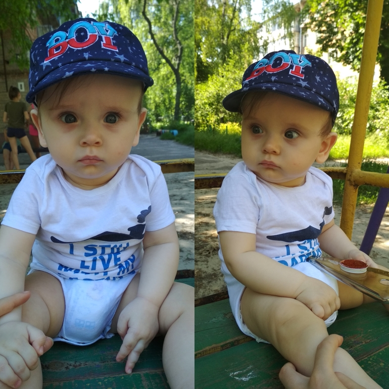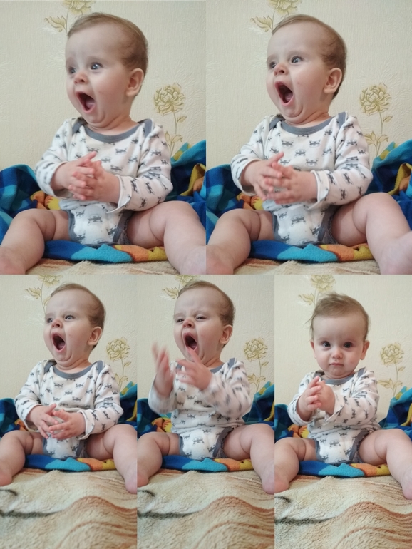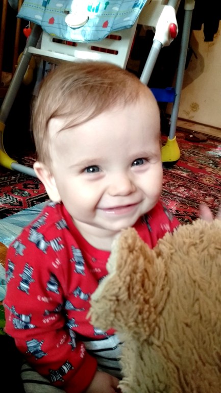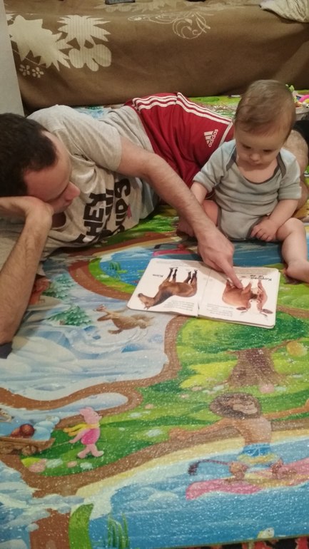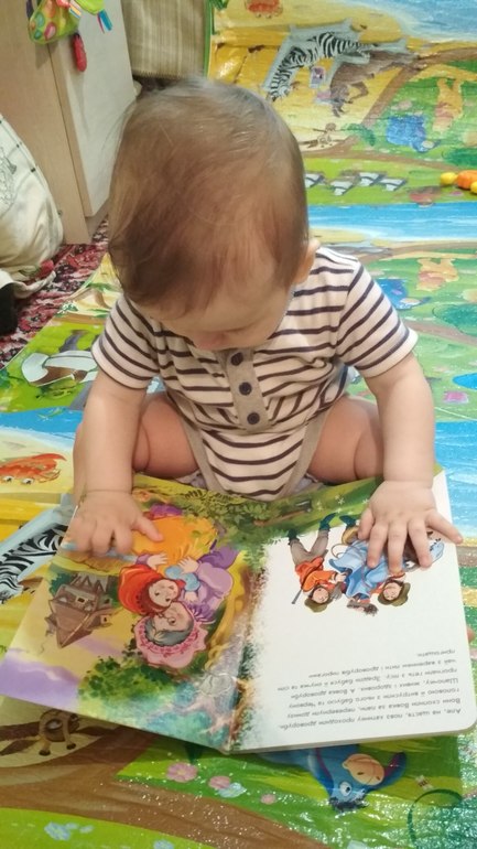 Научился хлопать в ладоши, понимает, где какие игрушки, есть любимые книжки, любит показывать туда пальчиком и что-то на своём говорить. Любит играть в догонялки.