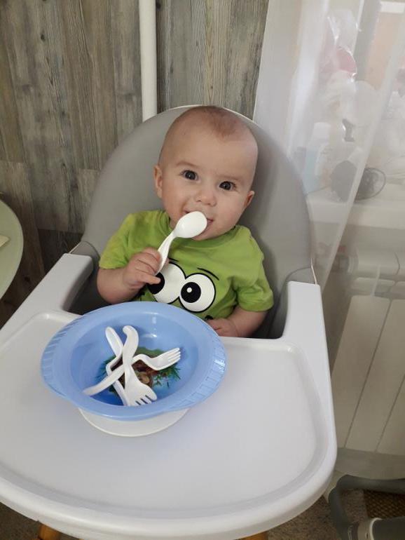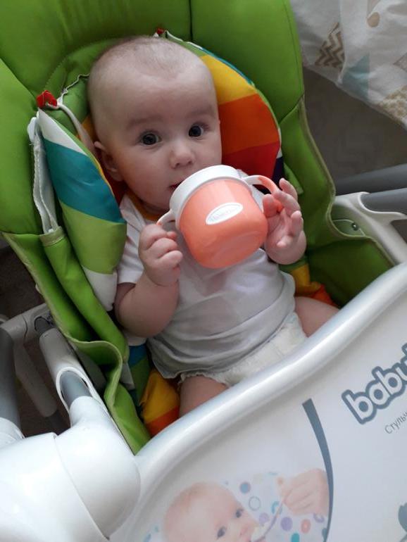 Учимся пить с кружки. Появился дикий пищевой интерес. Когда мы кушаем, он должен сидеть с нами за столом. Что бы я не ела, все отнимает и тянет в рот, если пью со стакана, хватает стакан и пытается пить. Уже давала просто лизнуть банан, помидор, огурец, хлеб, сало, детское печенье. Реакция на разнообразие вкусов непередаваемая, такая милота.