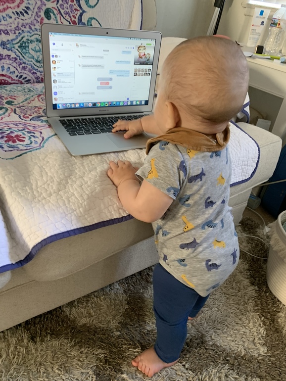 Из умелок одна самая значительная - встаёт у опоры уже где-то недели три. С каждым разом получается всё лучше и лучше. Пытается делать шажки, но видно, что страшно ещё ему, поэтому плачет, но иногда получается переступать малюсенькими шажочками. Стоя у опоры, вытягивается на носочках в струнку 🤗 Встаёт теперь вообще везде, где только можно и нельзя. Чуть отвернулась - и всё, около унитаза человек стоит улыбается 🤦🏻♀️ По стенке тоже встаёт уже, но больше всего, конечно, нравится стоять у дивана, тут удобнее. Плюс научился садиться из позы «стоя», а не только падать 😅