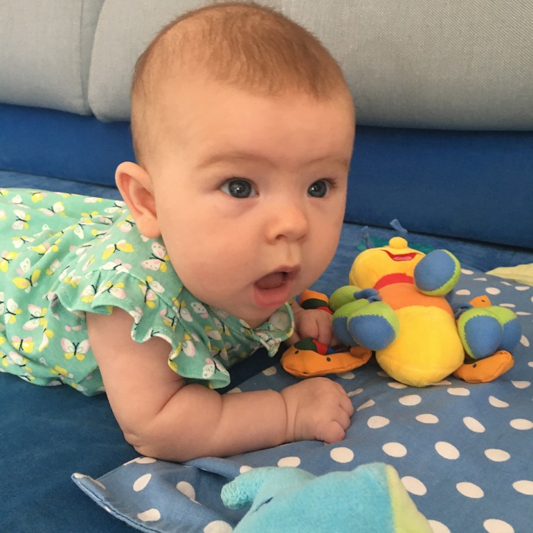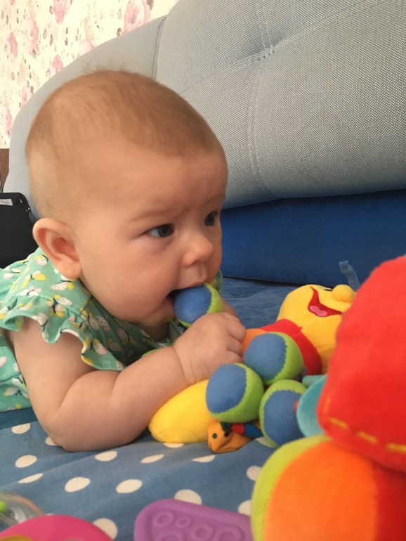 Отчёты по месяцамСходили мы на приём к педиатру, с прошлого визита как раз прошёл ровно месяц. Вес 5,880 кг, рост 63см. За месяц прибавка получилась 880 гр и выросла на 3,5 см. Поставили первую прививку Инфанрикс-гекса. Во время укола Даша немного покричала, но моментально успокоилась, все-таки пока малыши сама процедура гораздо легче проходит. Пока наблюдаем реакцию, надеюсь, все будет хорошо. Ещё в этом месяце сделали курс массажа, результат уже очень заметен - Дашуля стала гораздо лучше держать голову на животе и вообще теперь на животике лежит подолгу и с удовольствием, раньше пару минут был наш потолок. А вчера ей наконец удался самостоятельный переворот на живот)) 3 месяца и 18 дней. Пока только через левый бочок, будем тренировать и вторую сторону. Даше понравилось) даже ночью во сне перевернулась на животик и так и спала дальше. Окончательно переехали с дивана на пол на коврик с игрушками, одна может полежать минут 10, потом зовёт кого-нибудь составить компанию. В принципе, в душ сбегать вполне можно успеть) Да и девочки помогают, играют с Дашей пока я занимаюсь домашними делами. Нашла свои кулачки, теперь часто тянет их в рот. Ждём, когда заметит ножки) с руками управляется все лучше, игрушки трогает, ощупывает, тянет в рот. Смотрю и каждый раз удивляюсь, как же быстро меняются малыши, каждый день что-то новенькое, постепенно из кабачка превращается в маленькую девочку. Очень любим ее)))