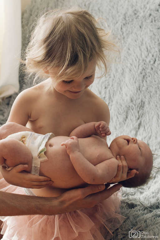 Лидочка, ставшая старшей сестрой, первые недели находилась в постоянном возбуждении, была рада, очарована и обеспокоена одновременно. Сейчас уже привыкла, не тревожится, обнимает и целует сестричку, поёт ей песенки, вызывая улыбку.