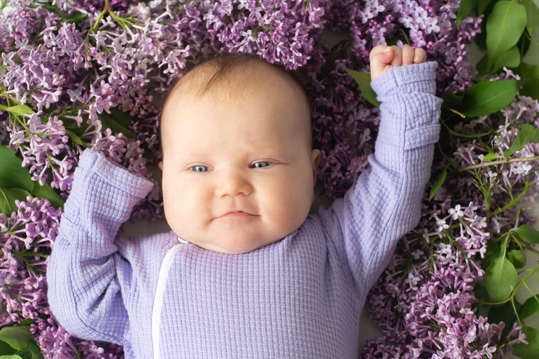 Улыбака! Начала радовать родителей осознанно улыбкой в ответ на ласковые слова ровно в три недели. А на камеру улыбаться не хочет...