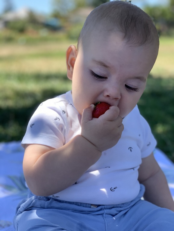 Редчайший момент, когда ребёнок что-то ест (клубничку)