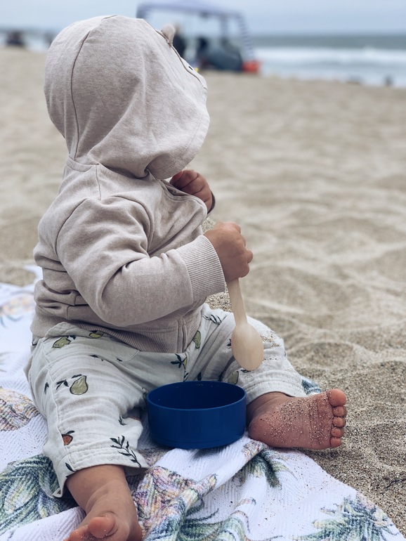 А, вот же ж - первый раз ездили на океан, очень понравилось ему ковыряться в песке! Совочка не было, пришлось ложку выдать ребёнку 😂