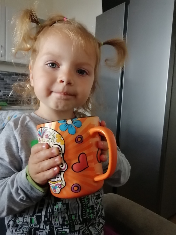 Я думала первое время, что Катя - такая серьёзная личность, но в последнее время она всё время улыбается. Много ноет и много улыбается)