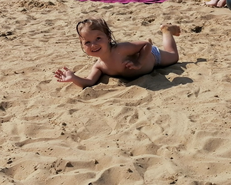 Ездили пару раз на карьер купаться, Валя ещё на даче с бабушкой была. Стараемся солнышко ловить.