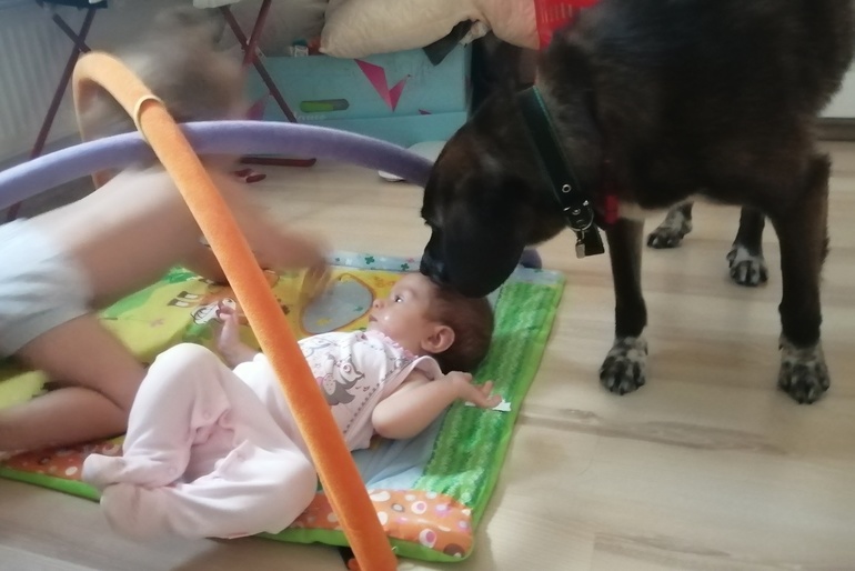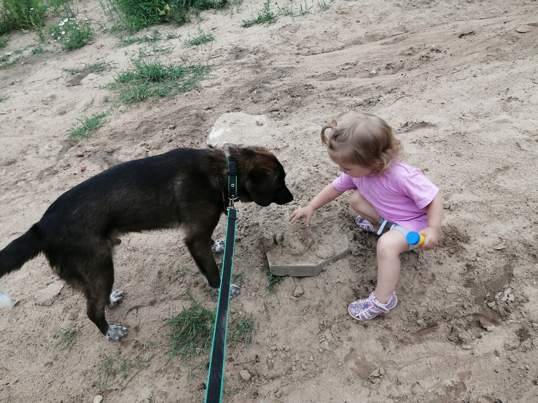 Начали обнимать собаку. Я уже привыкла гулять втроём и чаще, чем раз в пару дней. Иногда берём с собой мужа, но как-то так получается, что с ним прогулки ни фига не спокойнее)