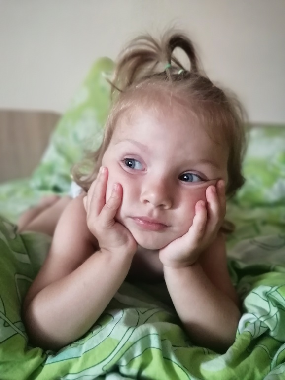 До сих пор у нас ведутся споры по поводу цвета глаз Кати. Они то ли серые, то ли болотные какие-то, но мне кажется, станут карими в итоге.