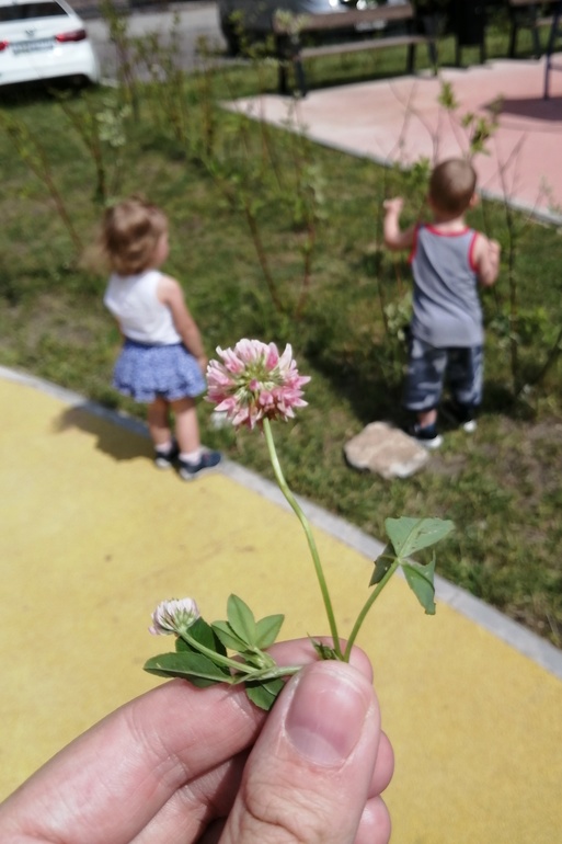 Ещё про Валину речь - появляются какие-то новые слова, она уже пытается что-то рассказывать. Налаживает контакты с детьми на площадке, с собачниками, с которыми гуляем. Правда, никто её не понимает, но её это не смущает 😅 Ещё Валюха получила первый цветочек от ухажёра 🤭