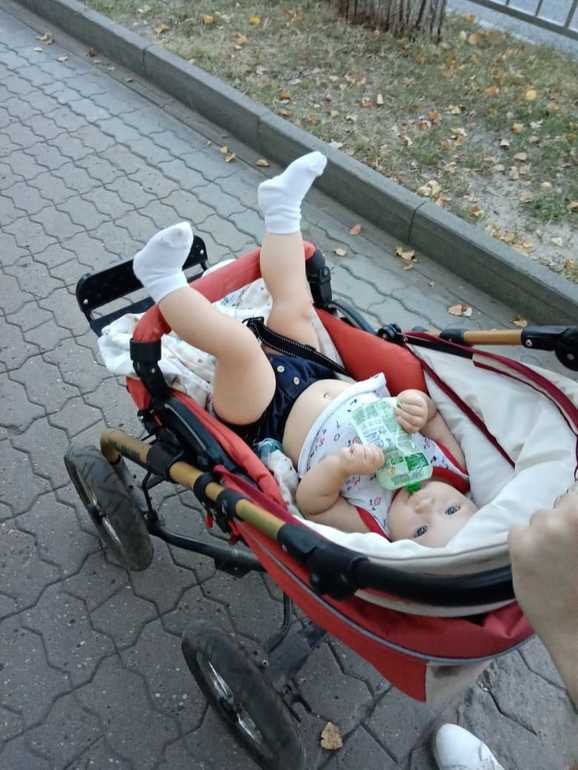 На прогулкеПросто оставлю это здесь. Уж очень эпично мы ехали из гостей. Василисе 11месяцев❤️