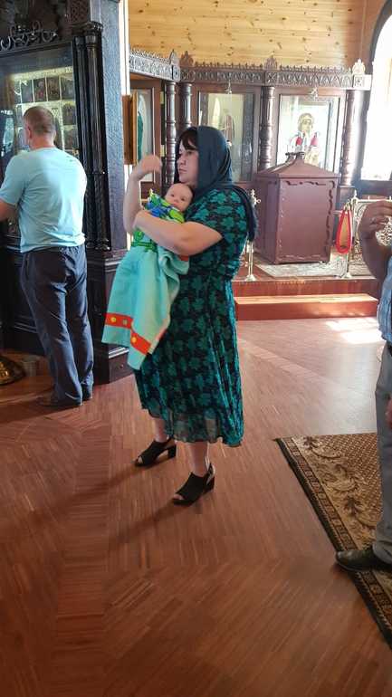 Крестильная одежда надевается на влажного ребёнка) поэтому у нас был халат, накинул и все. Потом ребёнка переодевают в то, в чем приехали.
