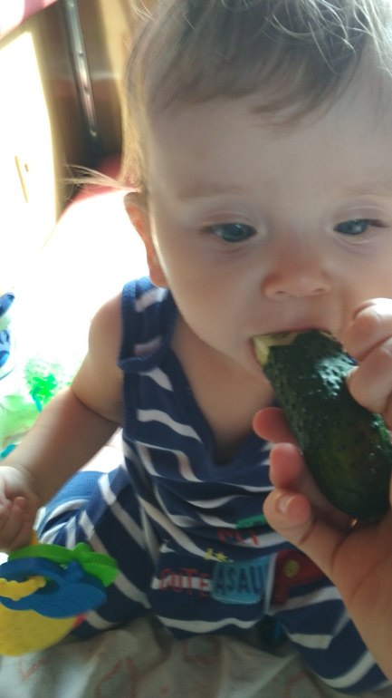 Вылез 6й зубик. Кушаем с общего стола. Пока ещё на гв. Спим один сон с 10.5 месяцев, в среднем два часа. Пока ещё не ходит.