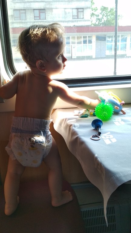 Сама поездка в поезде была отличная, было только жарко, а вот смена обстановки и тд... Даётся не легко. Воспринимает только "мими" 😀😀😀