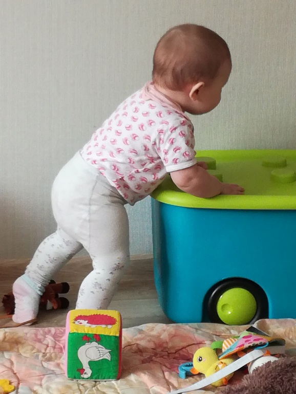 Обсуждение товаровКогда можно? Дочке 7 месяцев. Возле опоры делает пару шагов, а вот по дому «ходит» талкая перед собой разные предметы. Это либо ящик для игрушек на колесиках, либо развивающий кубик большой - он без колес, но по ламинату хорошо скользит😂, аналогично с моей большой пластиковой коробкой под шитье).