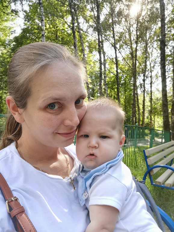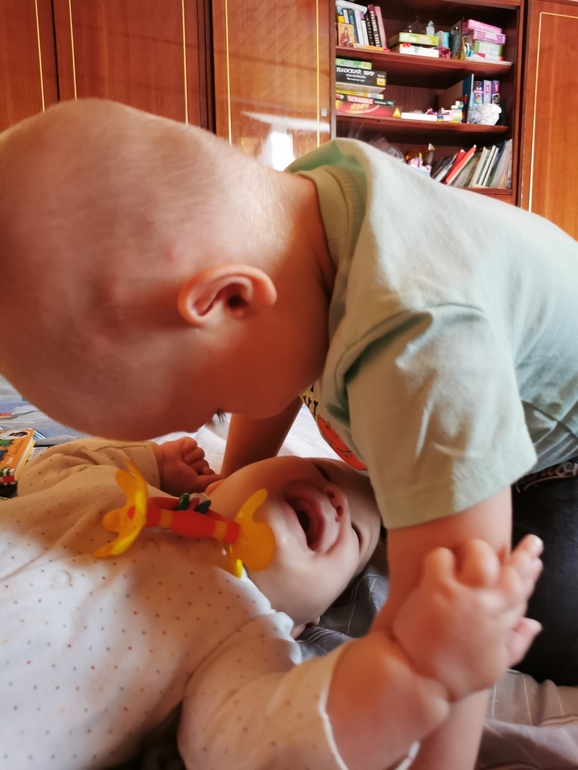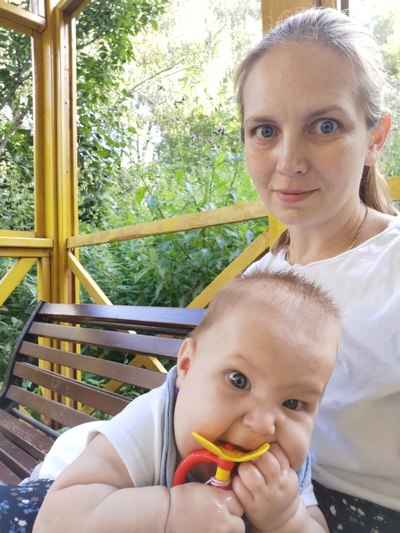 У нас недалеко от дома есть площадка с прикольными качелям. Они как бы двусторонние: с одной стороны для мамы, обычное сиденье досточкой, а с другой - малышковые, закрытое такое сиденье со всех сторон, ещё и поднято от земли так, чтобы лицо ребёнка и мамы на одном уровне получались, мама, соответственно, качается вместе с ребёнком. Лев просто обожает эти качели. А Глеб не меньше старшего радуется, глядя на нас 🔥