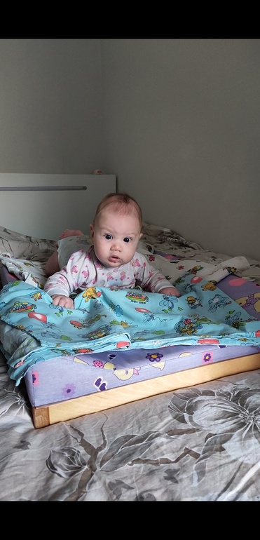Режим дняРост, вес будут известны через неделю, когда на прием пойдем. Носим 68-й размер, сынок крупный, полненький. Переворачивается со спины на живот, лежит на животе, упор на ручки, высоко держит головку, рассматривая все вокруг. Любимая поза сна - на животе, как и у старших сестры и брата. Ночью спит в своей кроватке, беру на кормления к себе.