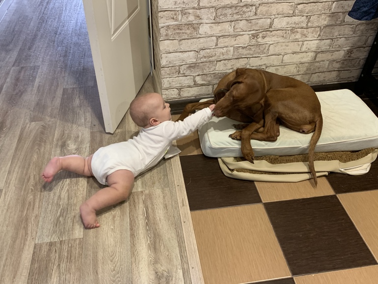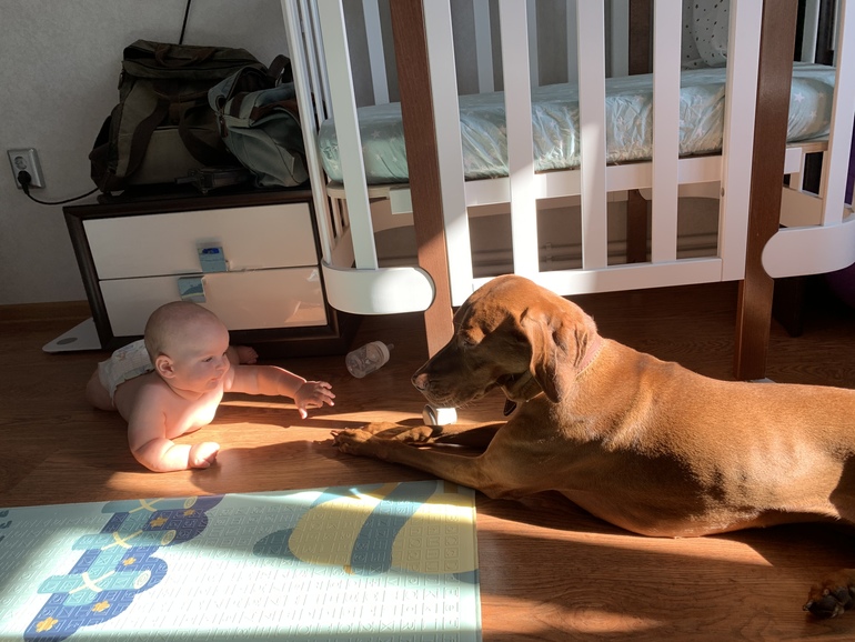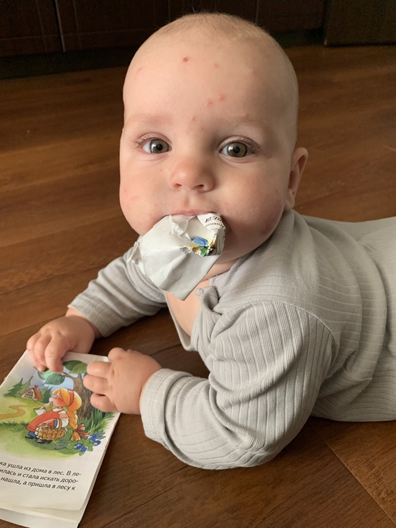 - До всего надо добраться и все облизать: собаку, стул, колесо коляски, пол, особенная старость - любые ноги в носках 😅