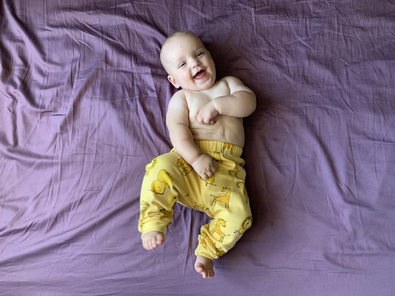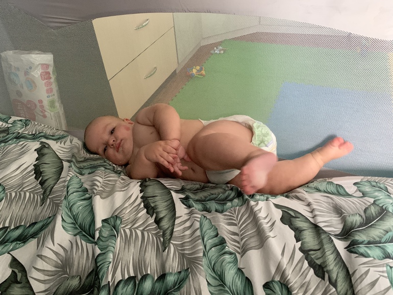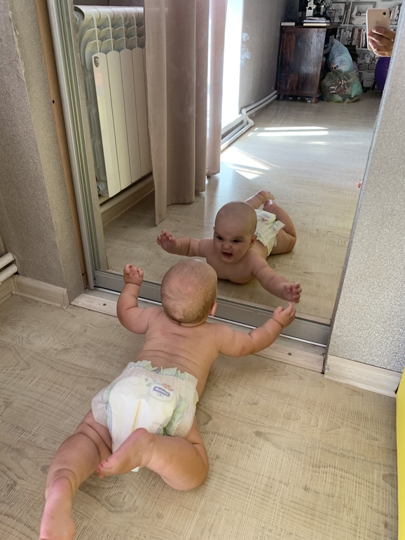 - На годовщину нашей свадьбы сделал подарок - сел русалкой (или русалом 😂). Я только успела мужу шепнуть: «Смотри», через секунды две шлёпнулся на бок. За пару дней до полугодия стал ежедневно по несколько раз в день повторять сей трюк. Ещё пытается при этом одну ручку задействовать с игрушкой. В общем, балансирует пока как может.