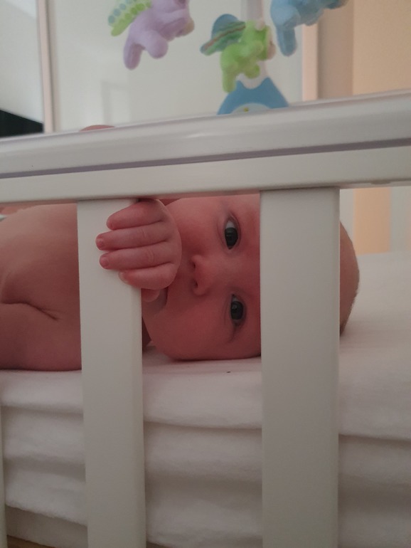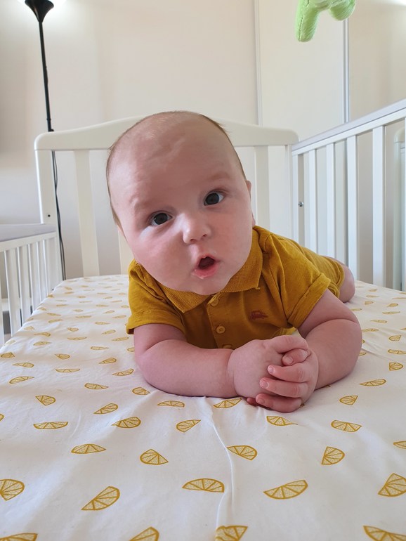 🙃 Научился переворачиваться со спинки на животик и обратно, почти всегда сам достаёт ручку, иногда помогаю.