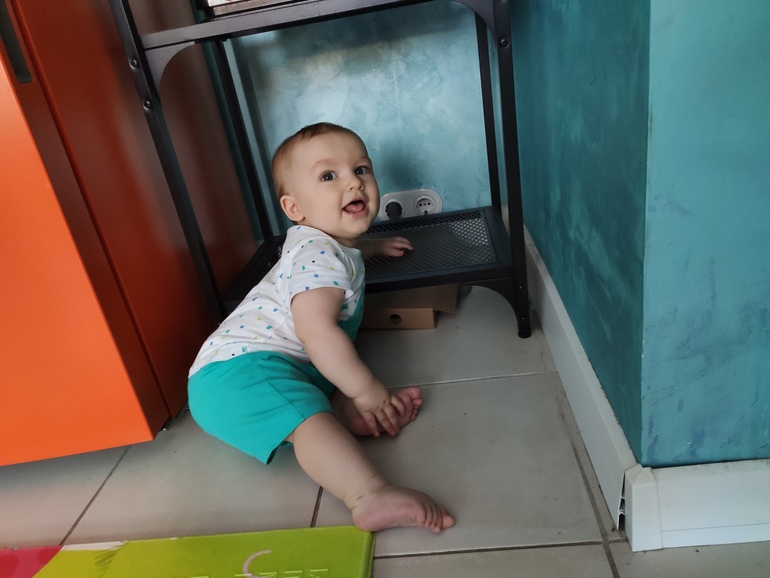 Так и живем в наши 8 месяцев. По расписанию кажется, что он мало ползает. На самом деле, он делает это ПОСТОЯННО! Ибо если не дать ему наползаться, то спокойная жизнь не светит никому. Товарищ живет на полу и активно рвется познавать остальное пространство. Сегодня вот ругался с диваном, потому что не мог на него залезть :)